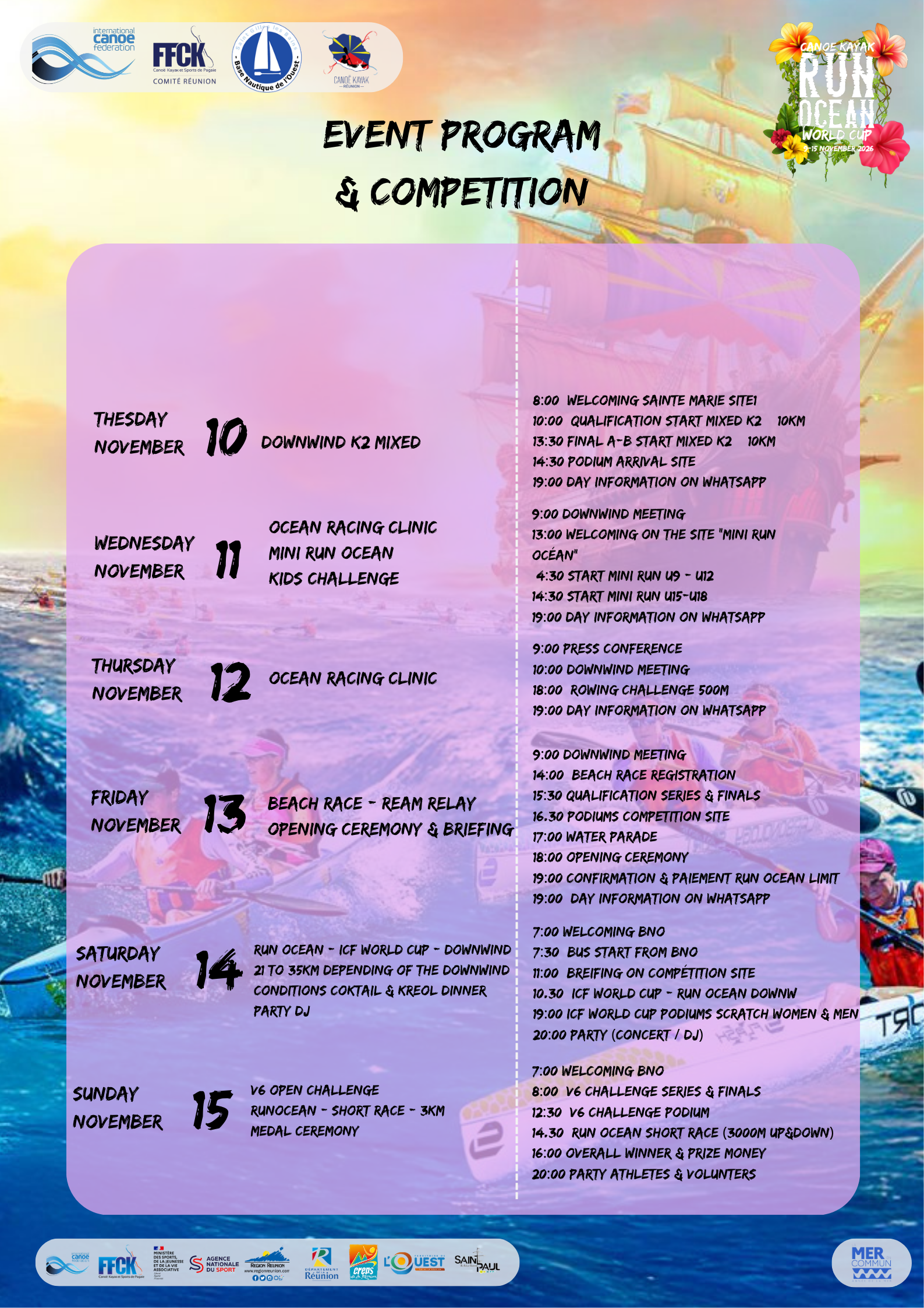 Join us for the exciting events of RunOcean 2026 and be part of an unforgettable experience by participating in a variety of challenging competitions.